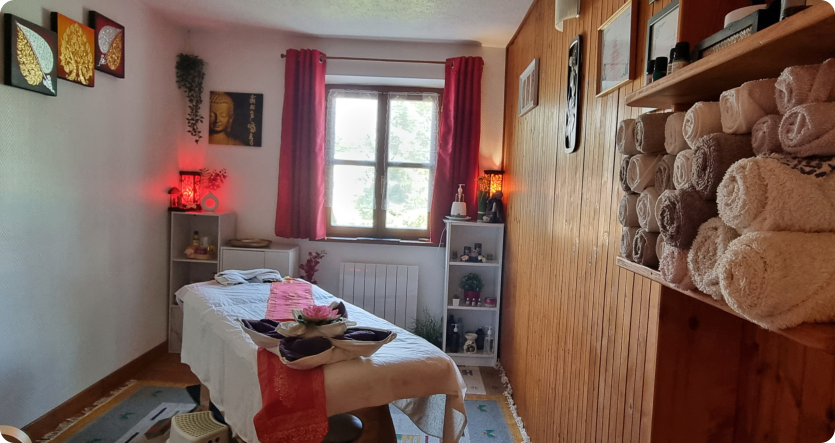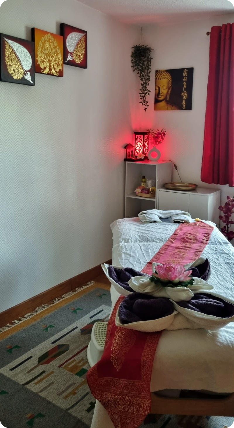 Mon enfance s’est déroulée dans un village de la région de Savannakhet. J’ai vécu dans une maison en bambou jusqu’à l’âge de 12 ans et comme toutes les filles je devais aller au puits communal chercher de l’eau, avant d’aller à l’école. A 21 ans, j’ai quitté mon village natal pour travailler comme jeune-fille au pair en Thaïlande et suivre, en parallèle, des études d’informatique. J’ai ainsi appris à parler et écrire le thaï, ce qui m’a permis de travailler ensuite dans une entreprise de construction. Le destin a voulu que je fasse la connaissance de mon mari venu, avec une association humanitaire , construire une école et un dispensaire dans mon village. Les choses de la vie ont fait que nous nous sommes mariés en 2009 à Molsheim (67) je vous attends pour vous apporter un bien- être corporel mais également la sérénité que le « lâcher prise » d’une séance de massage peut procurer.