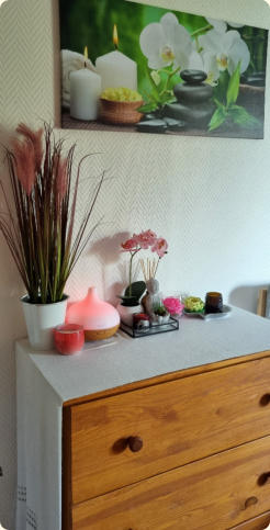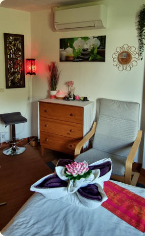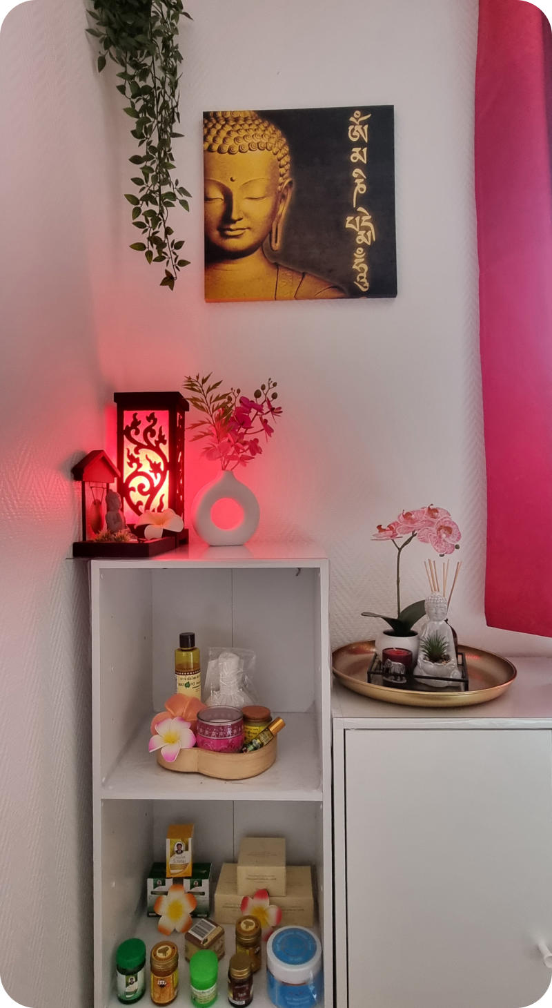 Bonjour, Je m’appelle Dala . Je suis d’origine laotienne et vis à Molsheim (67) depuis 2009. J’ai créé ma micro-entreprise dans le domaine « entretien corporel » en décembre 2017 et suis diplômée de l’école internationale de massages de Bangkok ( VOIR ) Je serais très heureuse et honorée de vous accueillir dans mon salon pour vous apporter bien-être et sérénité avec des massages adaptés à vos besoins, votre morphologie et à votre état d’esprit du moment.