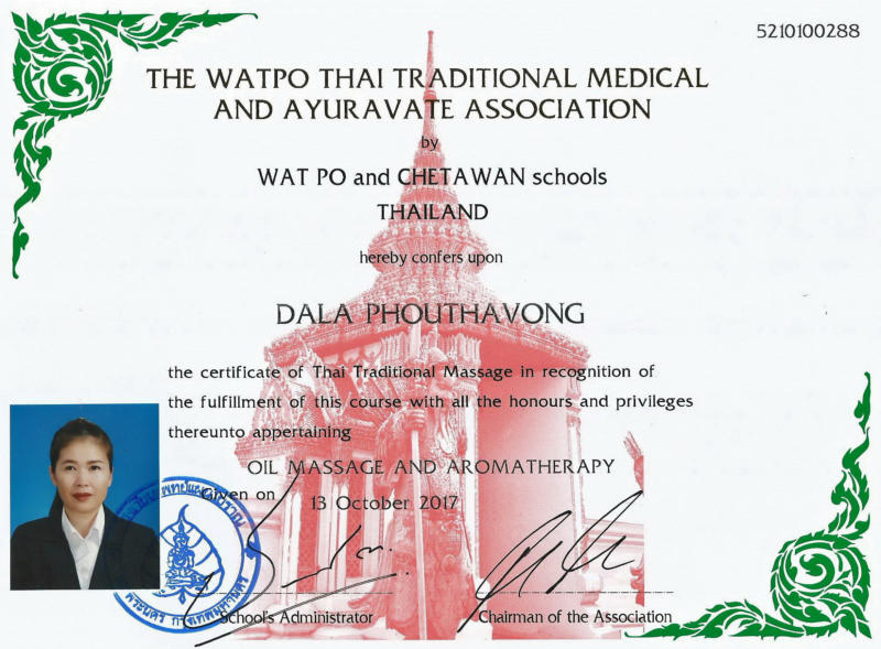 Diplôme massage thaï