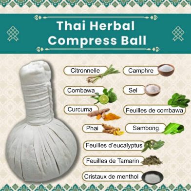 L e massage aux pochons d’herbes aromatiques , originaire de Thaïlande, consiste à appliquer sur le corps un mélange de plantes aromatiques et d’épices compressées dans un tissu de coton. Les pochons sont chauffés à la vapeur d’eau et libèrent les bienfaits de ces plantes. Le pochon est appliqué sur la peau dans des mouvements de lissage, de tapotement et de pression, sur des points et circuits d’énergie. Cette technique des pochons ou « Thai Herbal Compress Ball » « soulage les douleurs musculaires, dissipe les tensions, stimule les organes internes, améliore la circulation sanguine et lymphatique et assure une décontraction totale du corps et de l’esprit », suivant le Docteur Mukda Jankasem, Responsable Recherche & Développement du Chao Phya Abhaibhubejhr Hospital de Prachin Buri en Thaïlande.